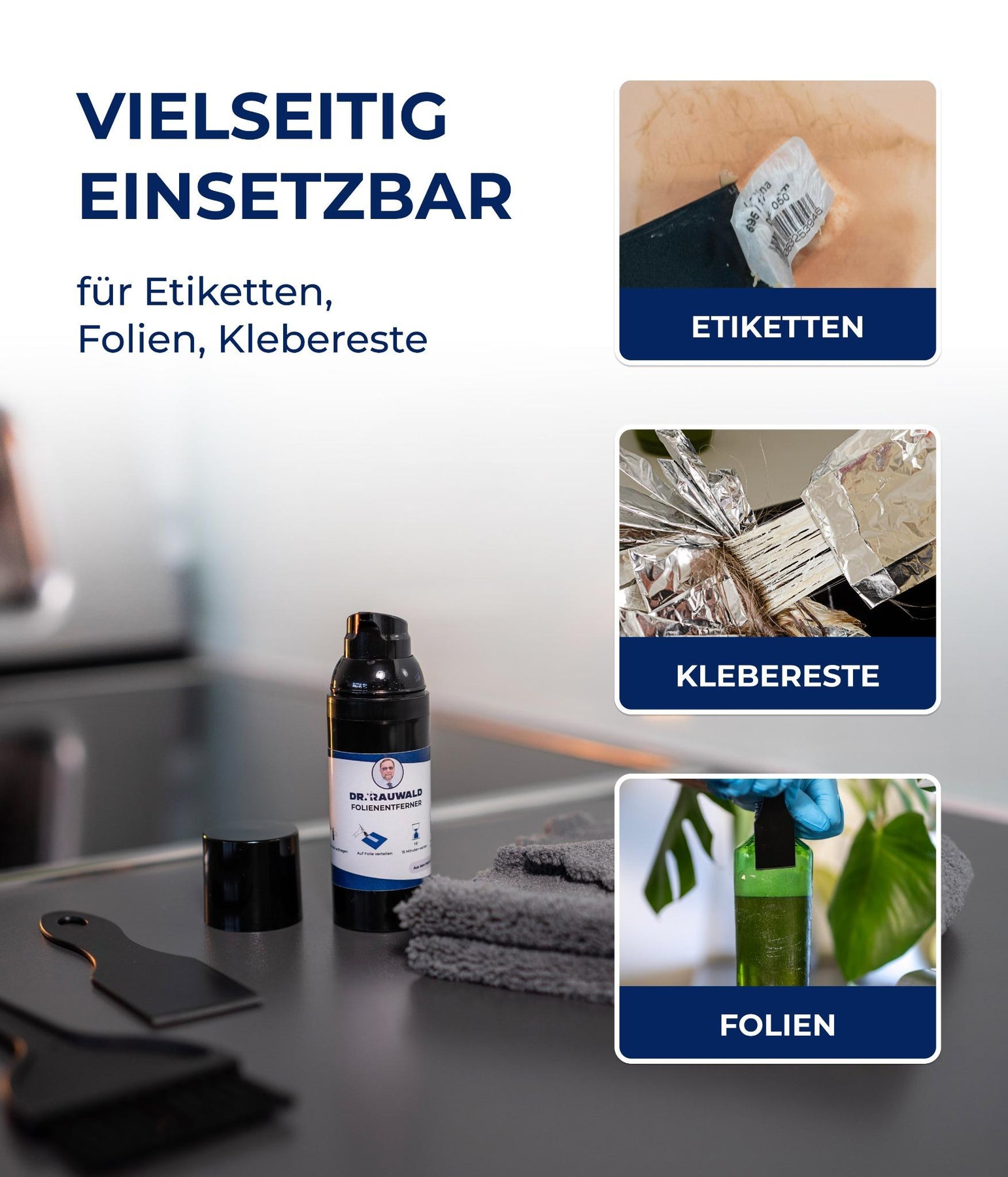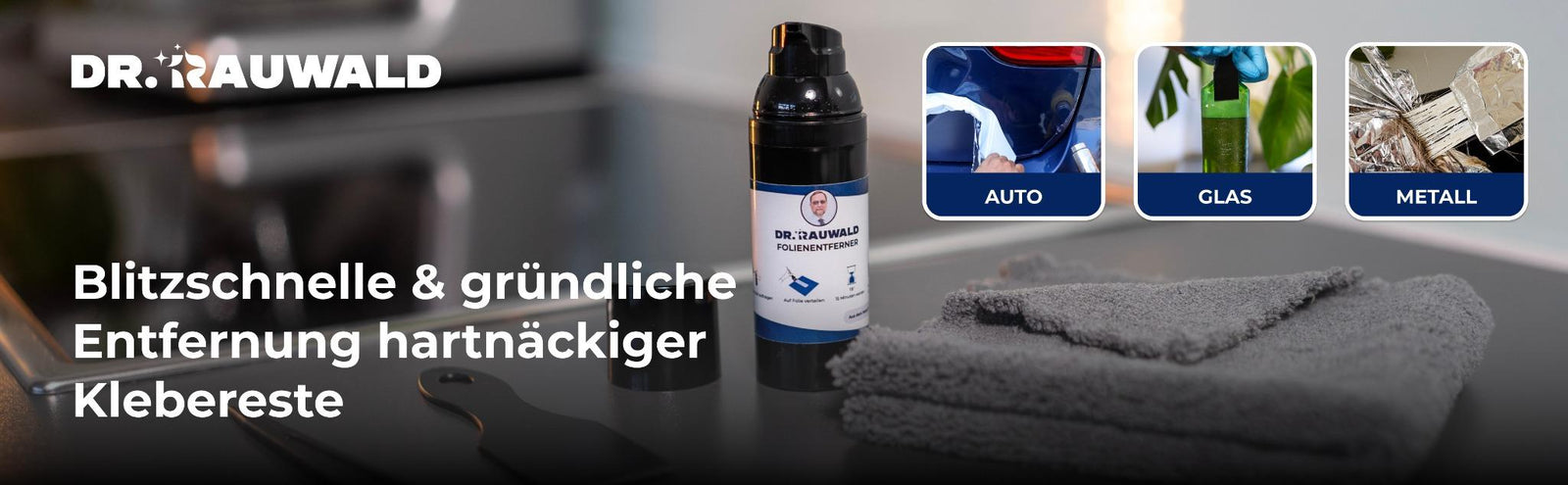 Mit dem Dr. Rauwald Folienentferner-Set entfernst Du Aufkleber, Folien und Klebereste im Handumdrehen – ganz ohne aggressive Chemie.